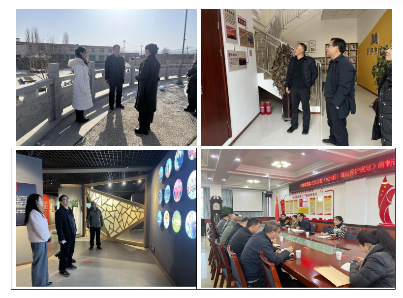 2025年12月9日-11日,研究院彭岚嘉教授带领博士生郝婷、程姗、田文山组成考察团队,前往兰州新区和永登县调研。9日,赴兰州新区秦王川湿地公园、中川小镇、史喇口乡村旅游景区、长城烽火台、花卉产业基地和甘肃省经济社会发展展览馆调研,重点了解黄河文化等资源的分布及文旅开发情况,兰州新区经济发展局、商务和市场监管局相关领导陪同调研。随后在兰州新区经济发展局召开座谈会,彭岚嘉教授介绍了兰州大学黄河国家文化公园研究院相关情况,强调希望通过此次调研了解本区域德黄河文化资源分布状况、黄河文化保护传承弘扬经验,做好研究发掘、环境配套、文旅融进、数字再现等工作。